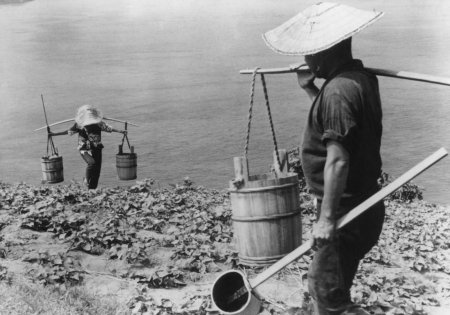 Uzun taxta vasitəsiylə boyunlarda daşınan su çəlləkləri